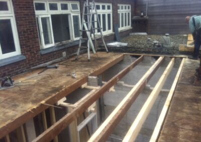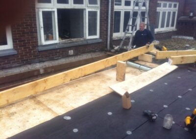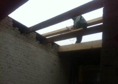 Hieronder vindt u afbeeldingsmateriaal van een door ons uitgevoerd Dakwerk renovatie project aan de Orteliuskade waarbij de complete balkenlaag vernieuwd en verstevigd is.